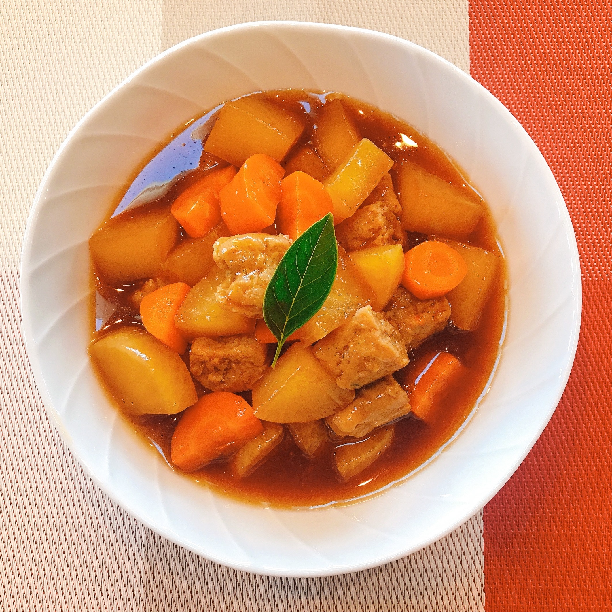 ③お鍋に出汁、【調味料】、大根、にんじんを入れ、温まったら①を入れアクを取りながら弱火で煮込む