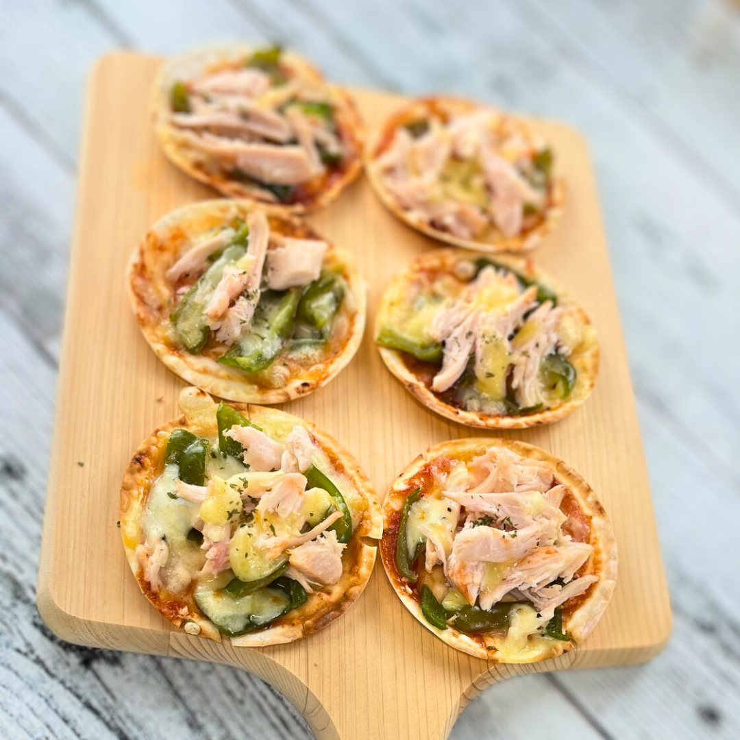 サラダチキンでヘルシーミニピザ