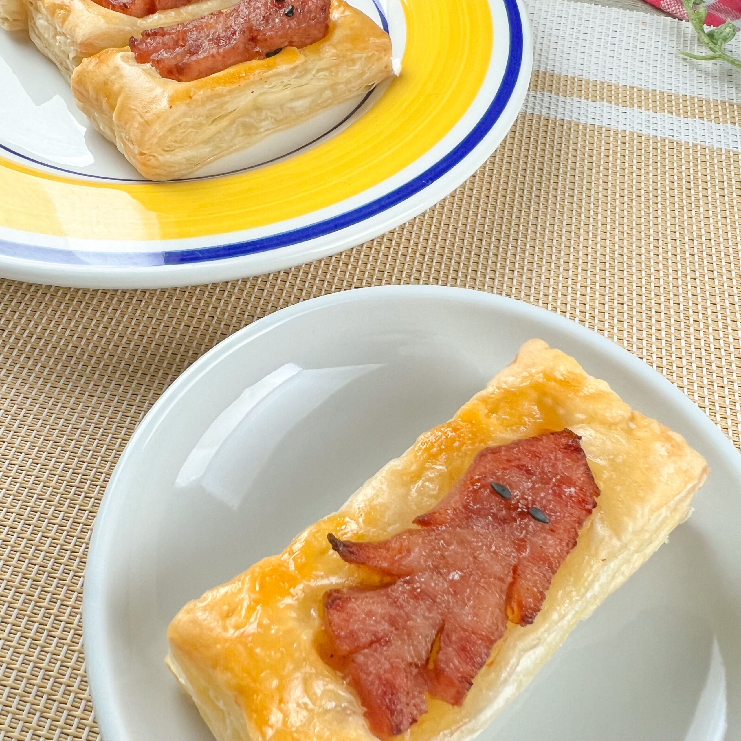 ④パイシートにソーセージを乗せて、卵を塗って焼き目が付くまでオーブンで焼けば完成♪