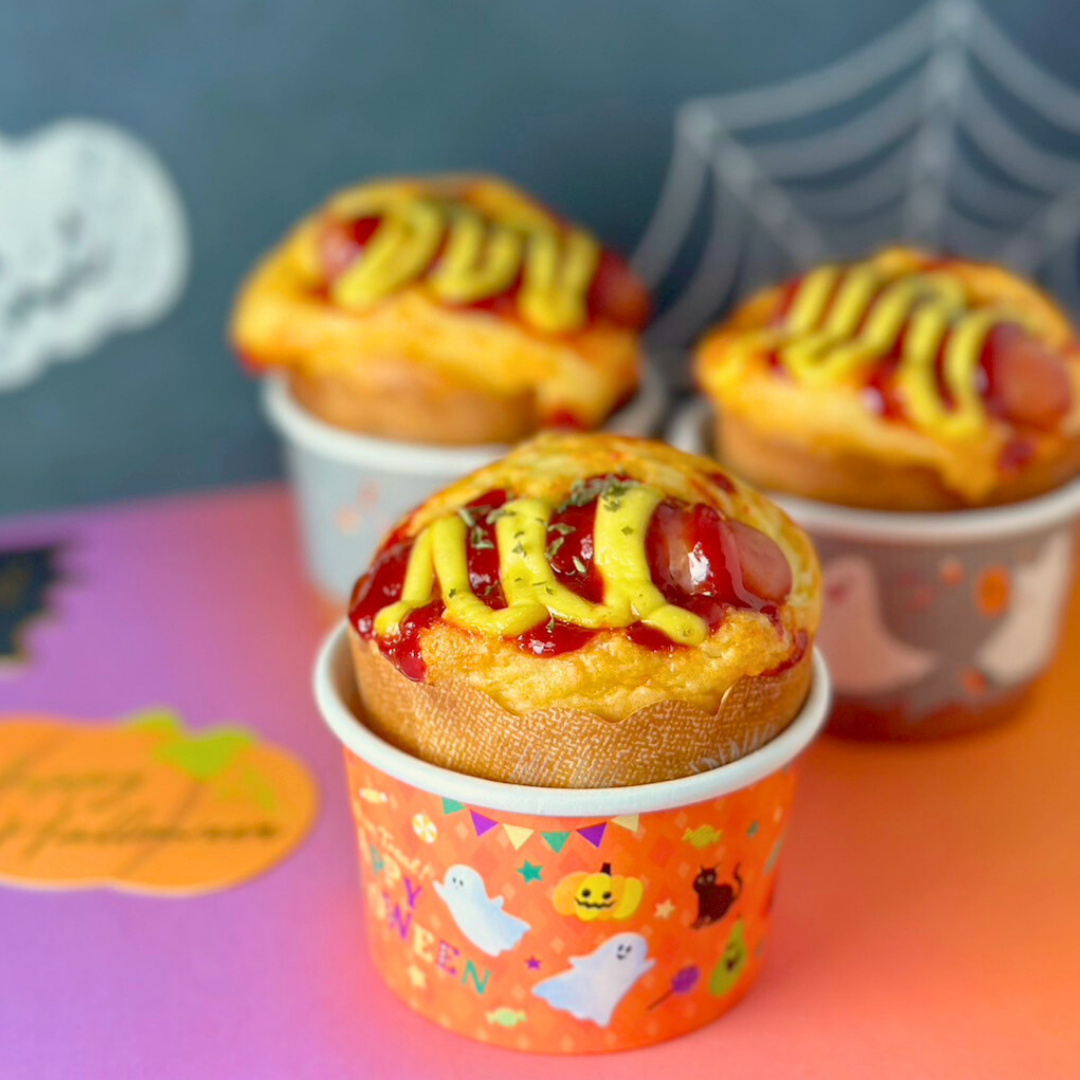 ③カップに注ぎ、ウインナーを1本ずつのせる