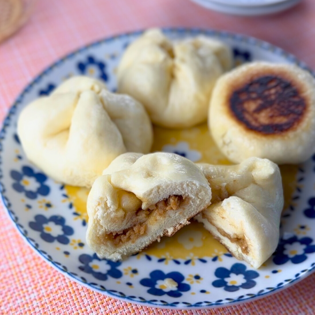 ⑥水分がすべて飛び、肉まんの底に焼き目がついたら完成!