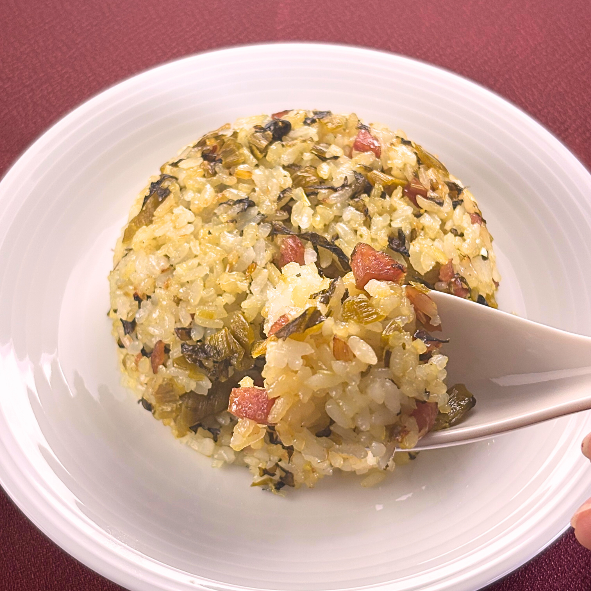 ⑤長ねぎに焼き色がついたら中火のまま、ごはん、(合わせ調味料)を入れ炒め合わせる