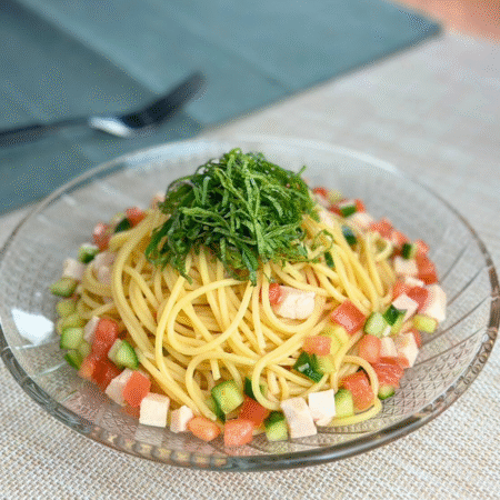 白だしで簡単!チキン冷製パスタ